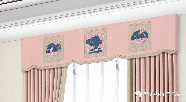 簾頭上簡單又富有趣味的圖案組合,令感官更富有變化,增加整個空間的藝術魅力與時尚韻味。
